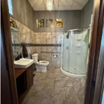 – Beautiful tiled bathroom with glass shower